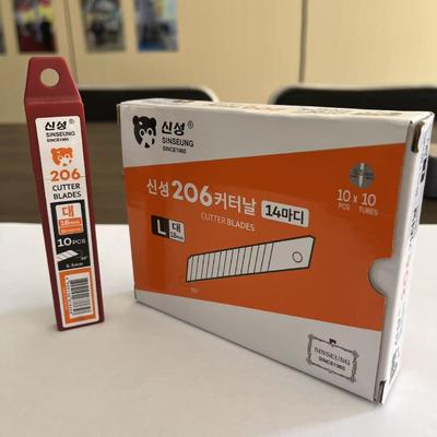 SINSEUNG's 18mm Cutter Blades, also known as 18mm Blade Cutters, are a versatile cutting tool suitable for various applications across different industries. The model number L206 signifies the high-quality standard of these blades. With certifications including CE-ROHS and MSDS, users can trust in the safety and reliability of these blades.